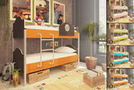 Современный дизайн 2-х ярусных кроватей Орбита-12 фабрики Мебель Кострома понравится как родителям, так и детям. Изготовлена данная мебель на немецком оборудовании из Австрийского ЛДСП Эггеровского производства. Отличается высокой устойчивостью, так как каркас кровати опирается на трубы диаметром 50 мм. Кроме того, эти кровати имеют ортопедическое основание в виде гнутых ламелей из фанеры, которые придают спальному месту больше удобства и комфорта. Шесть различных цветов фасада дают возможность подобрать цвет, нужный для Вас и соответствующий оформлению детской.