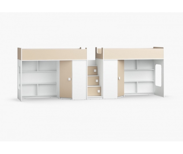 Трехъярусная кровать Легенда 43.2.6 цвет корпуса белый / фасад капучино.