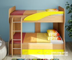Существует распространенное заблуждение о том, что такие модели интересны только многодетным семьям. И в спальне, где живет 1 ребенок, такая кровать станет развлекательной зоной, а так же поможет не тривиально оформить эту комнату. При желании, нижний ярус можно переоборудовать под рабочий столик, где ребенок сможет делать уроки, либо мини спортзал. Такая кровать гармонично впишется в окружающий ее интерьер и добавит определенную изюминку в интерьер комнаты.