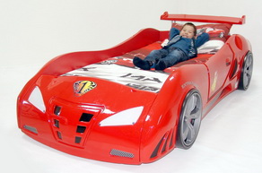 На данный момент разные мебельные фабрики производят игровую детскую мебель: кареты, горы, корабли, кровати-мотоциклы, шкафы домики, машинки. Несомненно мальчишкам по старше придутся по вкусу кровати-машины.  Подобные спальные места в виде автомашины  бывают большие, со светящимися фарами, светодиодной подсветкой, ящиком для белья и ортопедической решеткой, а так же двухуровневые кровати.
