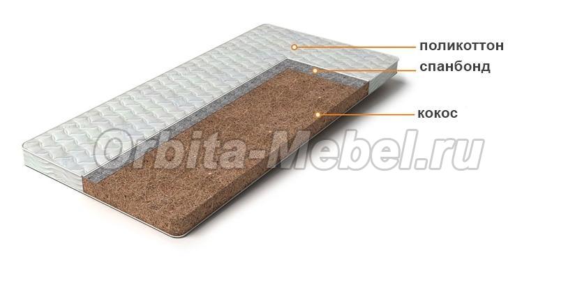 Матрац "КОКОС ЭКО" беспружинный ортопедический (кокос) 150*75, Н8 см.