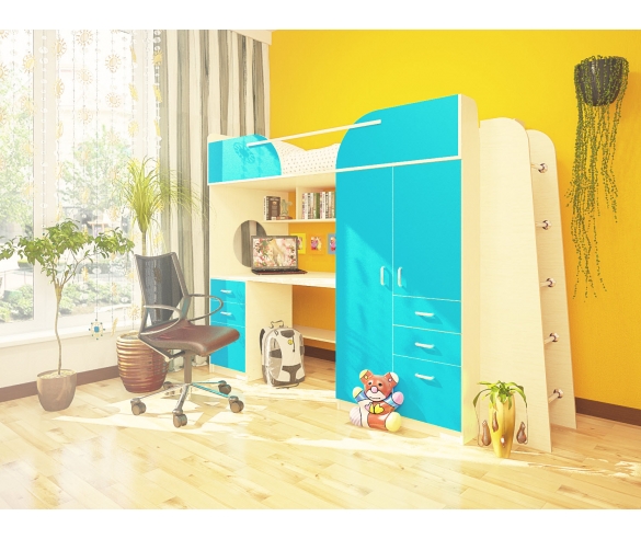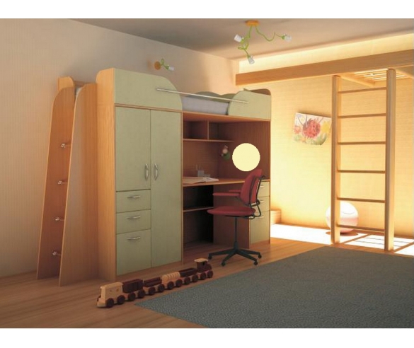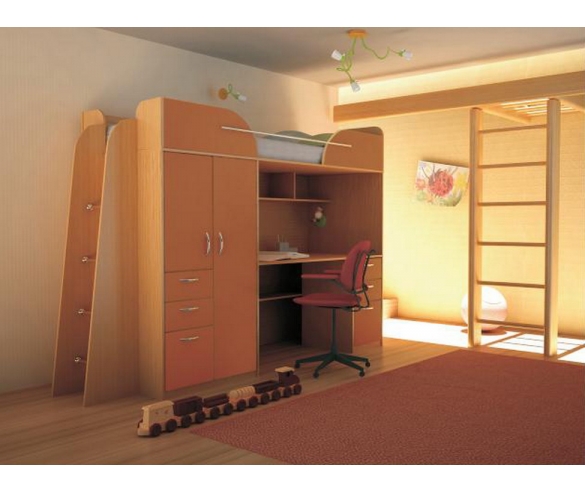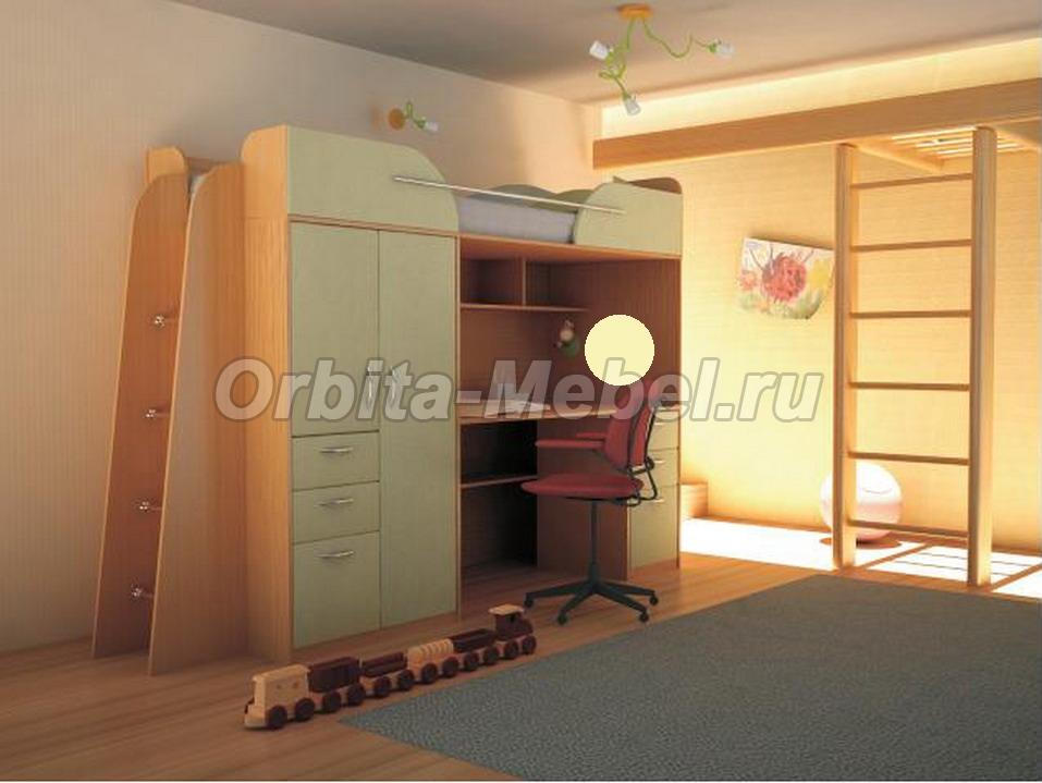 Детская кровать чердак Орбита-4 (Корпус бук) - детская стенка с рабочей зоной
