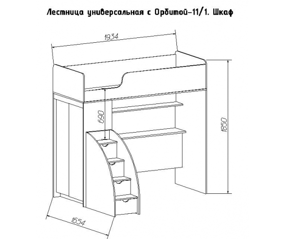 Детская кровать Орбита-11/4 (нижняя) НОВИНКА. спальное место 190*80см. 11 цветов фасадов.
