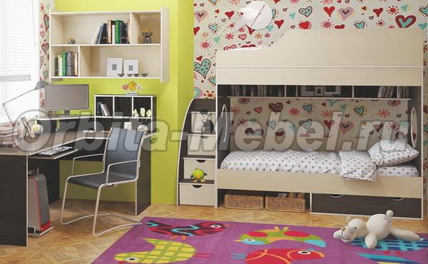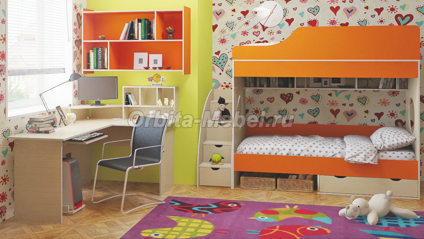 Детская мебель Орбита 5, лестница-тумба, угловой стол, полка.