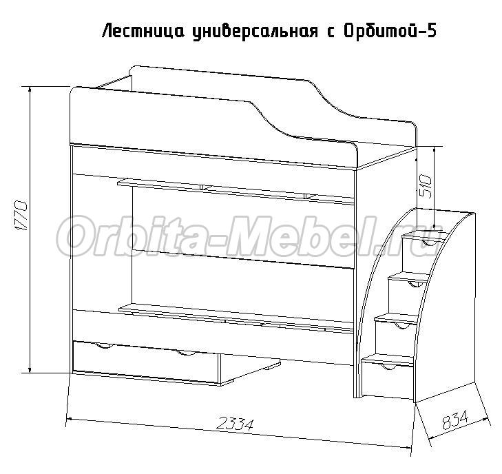 Кровать чердак Орбита 5 модульная детская мебель