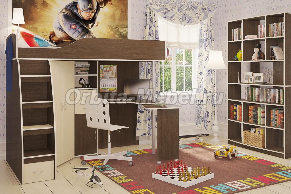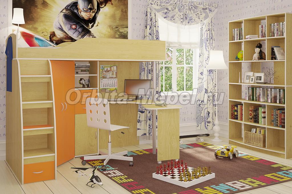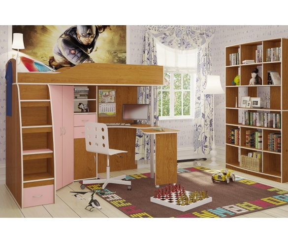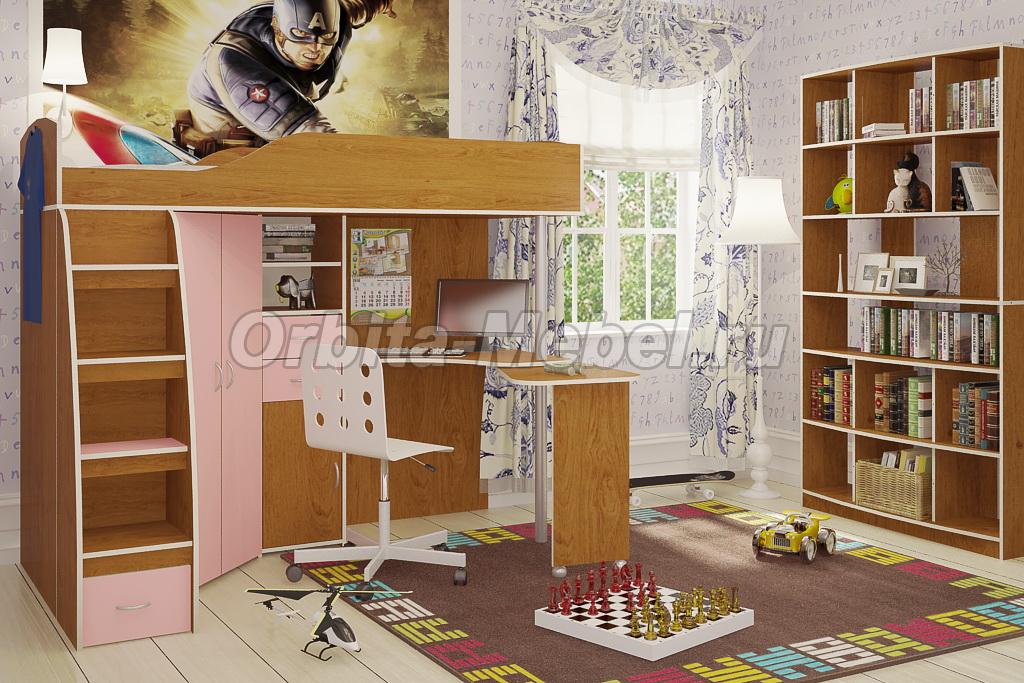 Мебель в детскую комнату Орбита-1 МЕДИУМ, (ольха/розовый), спальное место 200х80