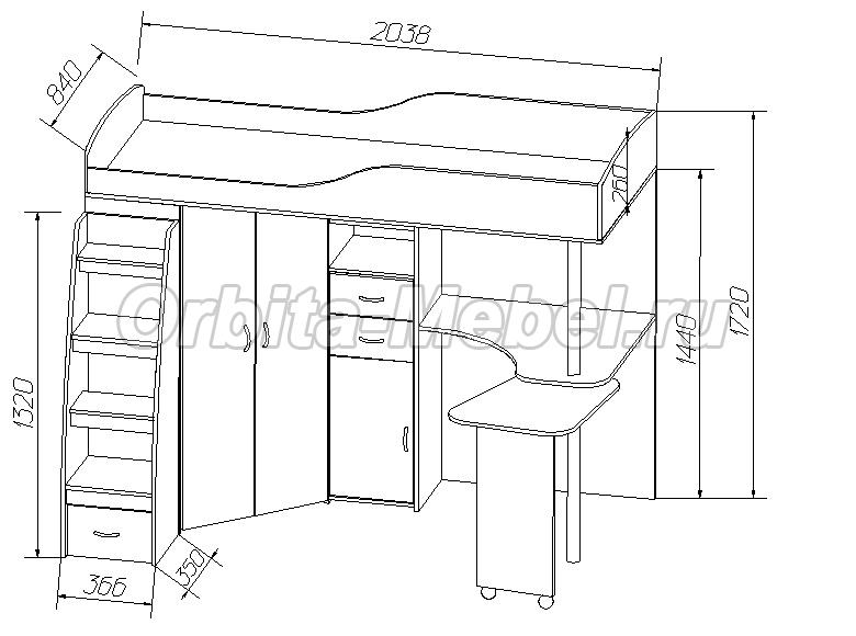 Детская мебель Орбита-1 Медиум - схема с размерами