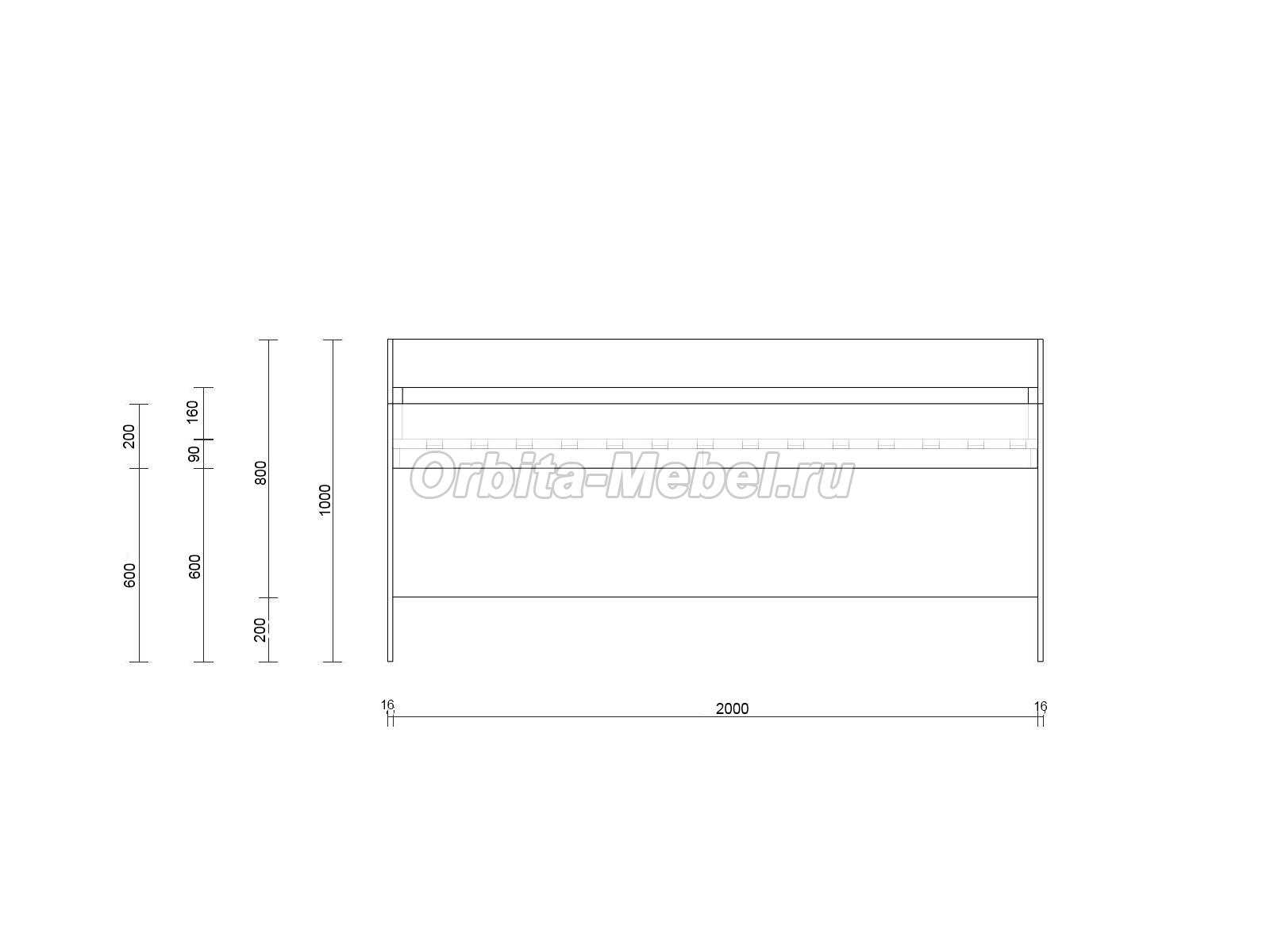 верхняя кровать 2032х832хв100см; нижняя кровать 1932х832хв572; ящик для белья 1948х592хв196см