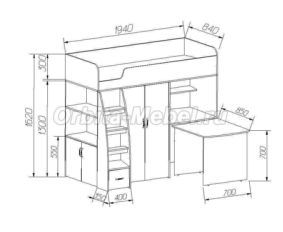 кровать чердак с рабочей зоной Орбита 18 доставка