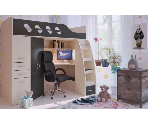 Детская кровать чердак Орбита 22 дуб кремона/венге