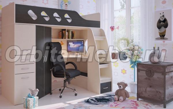 купить кровать чердак с рабочей зоной Орбита 22 венге - дуб кремона