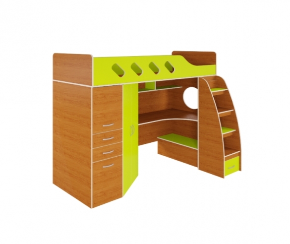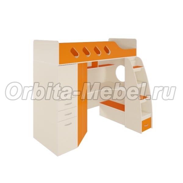 купить кровать чердак с рабочей зоной Орбита 22 дуб кремона - оранж