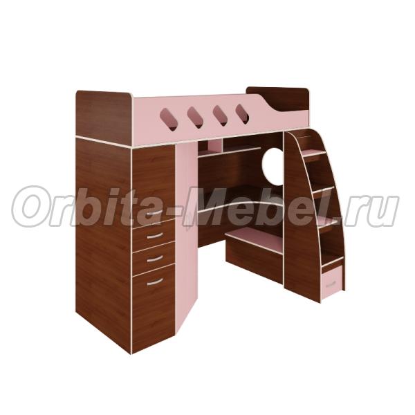 кровать чердак с рабочей зоной Орбита 22 итальянский орех - розовый