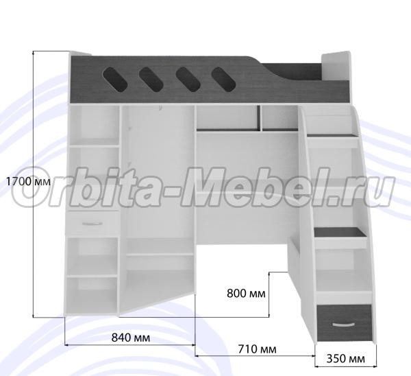 купить кровать чердак с рабочей зоной Орбита 22 дуб кремона - венге