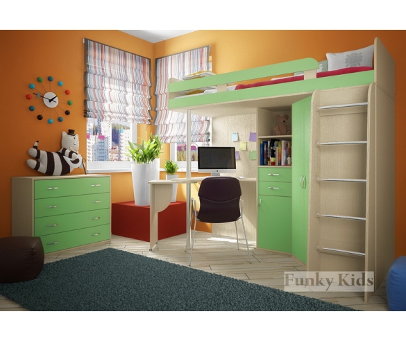 Кровать чердак Фанки Кидз -1 Лайт (корпус ольха / фасад ольха)