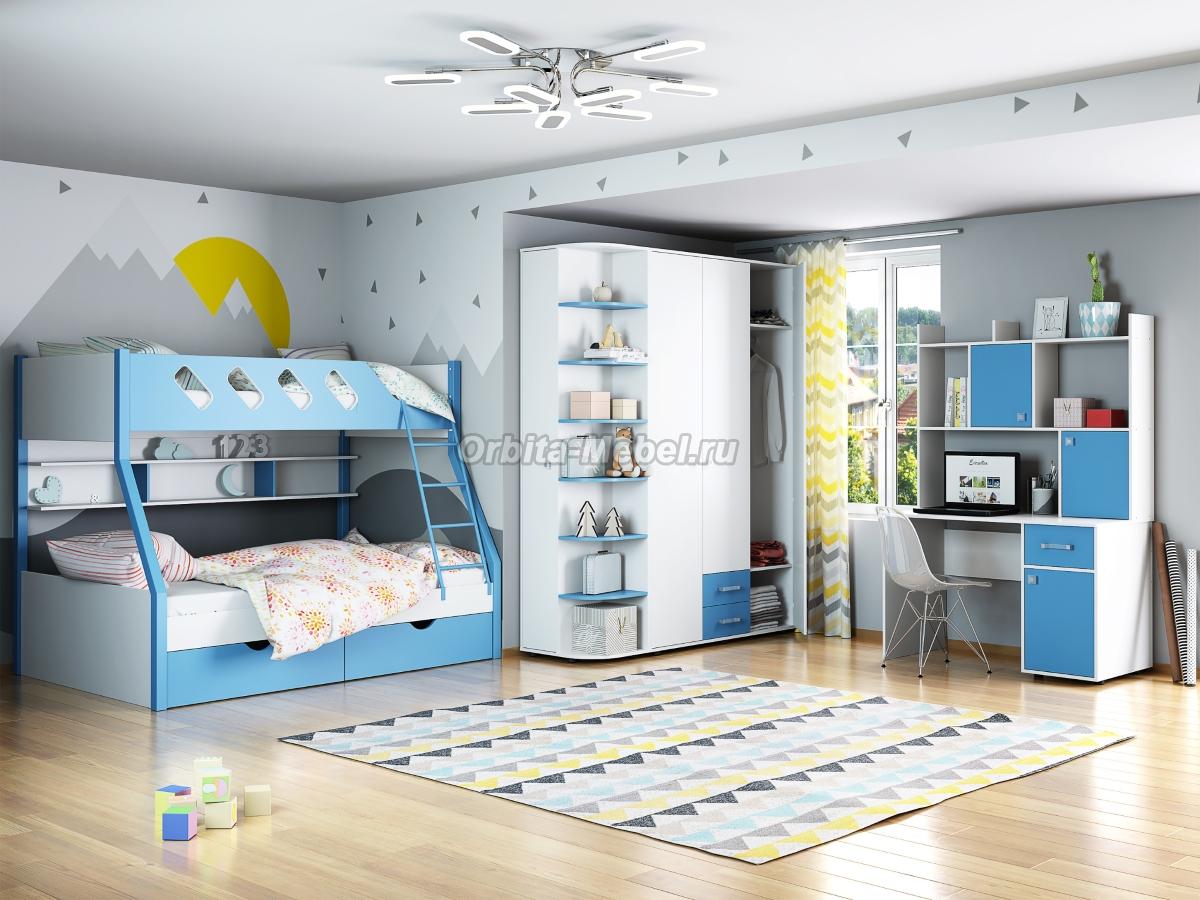 Детская комната Дельта для двух детей Белый/Голубой