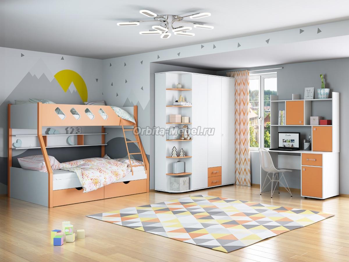 Детская комната Дельта для двух детей Белый/Оранжевый