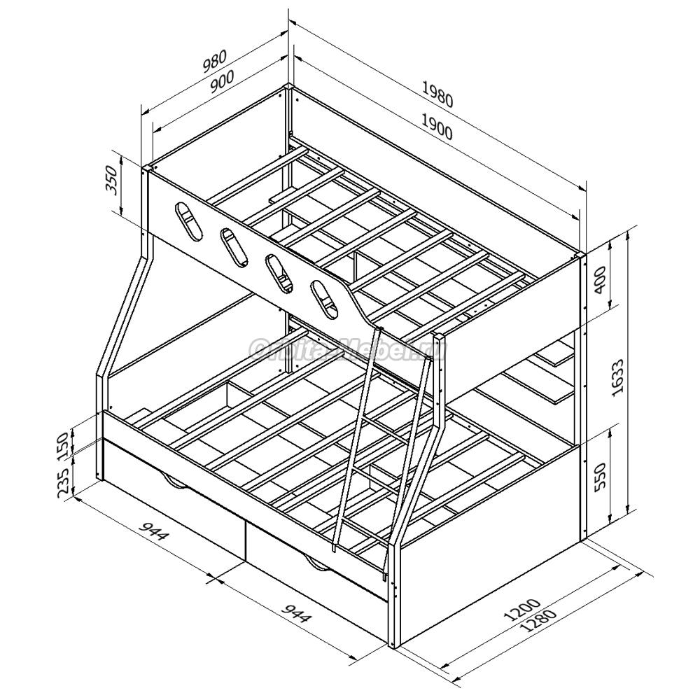 Двухъярусная кровать Дельта 20.02 схема с размерами