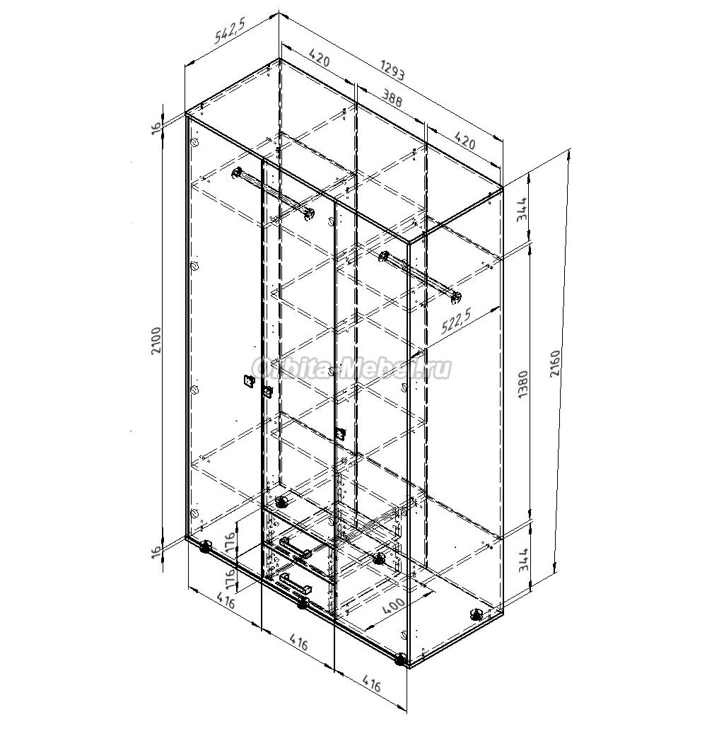 Трехдверный шкаф Дельта 3.03 схема с размерами