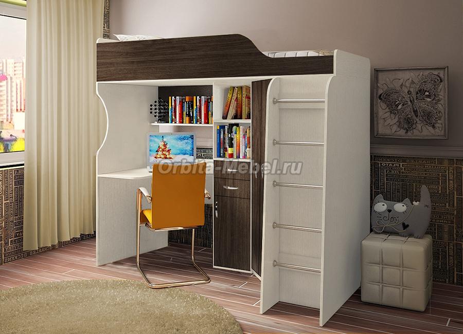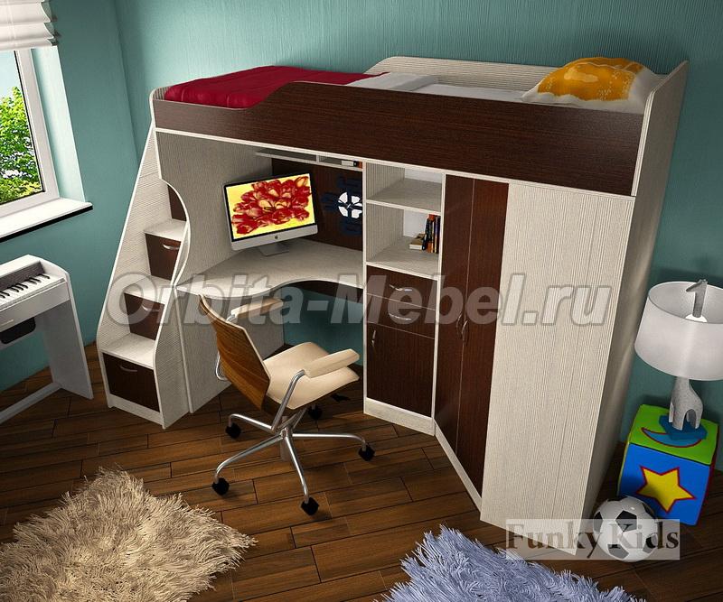 Кровать чердак Фанки Кидз 7 + лестница - комо корпус сосна лоредо / фасад венге