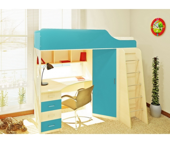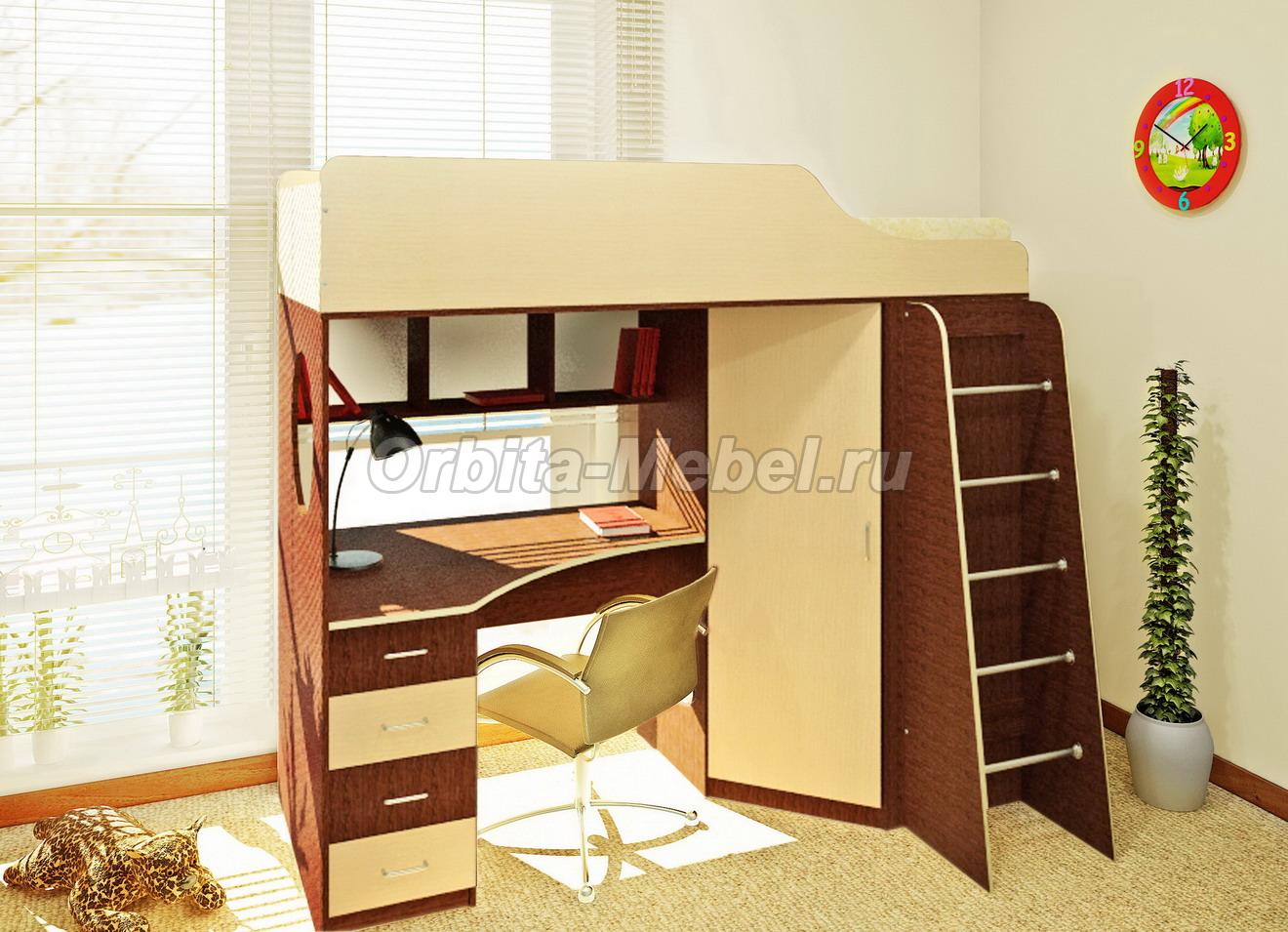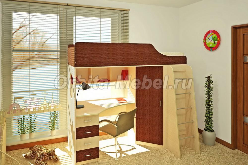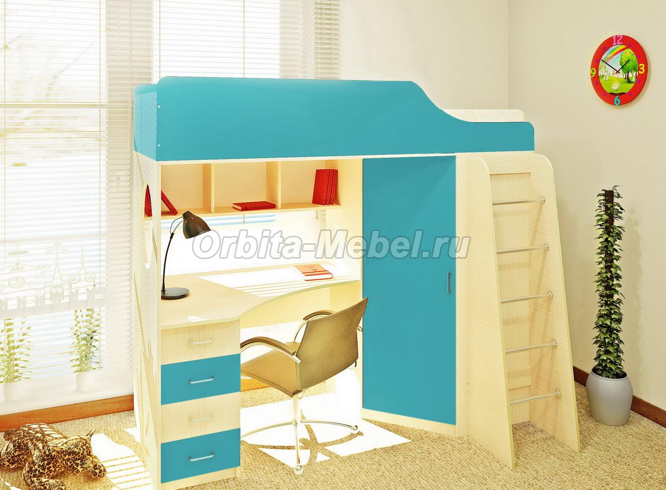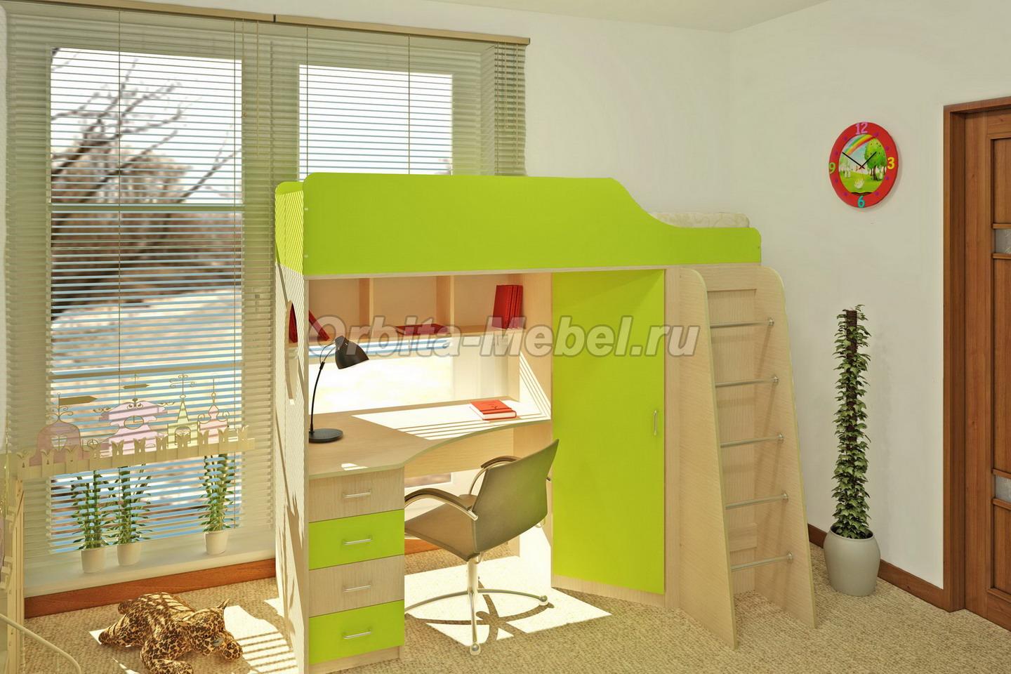 Кровать чердак Орбита-7 с рабочей зоной: детская мебель для детей