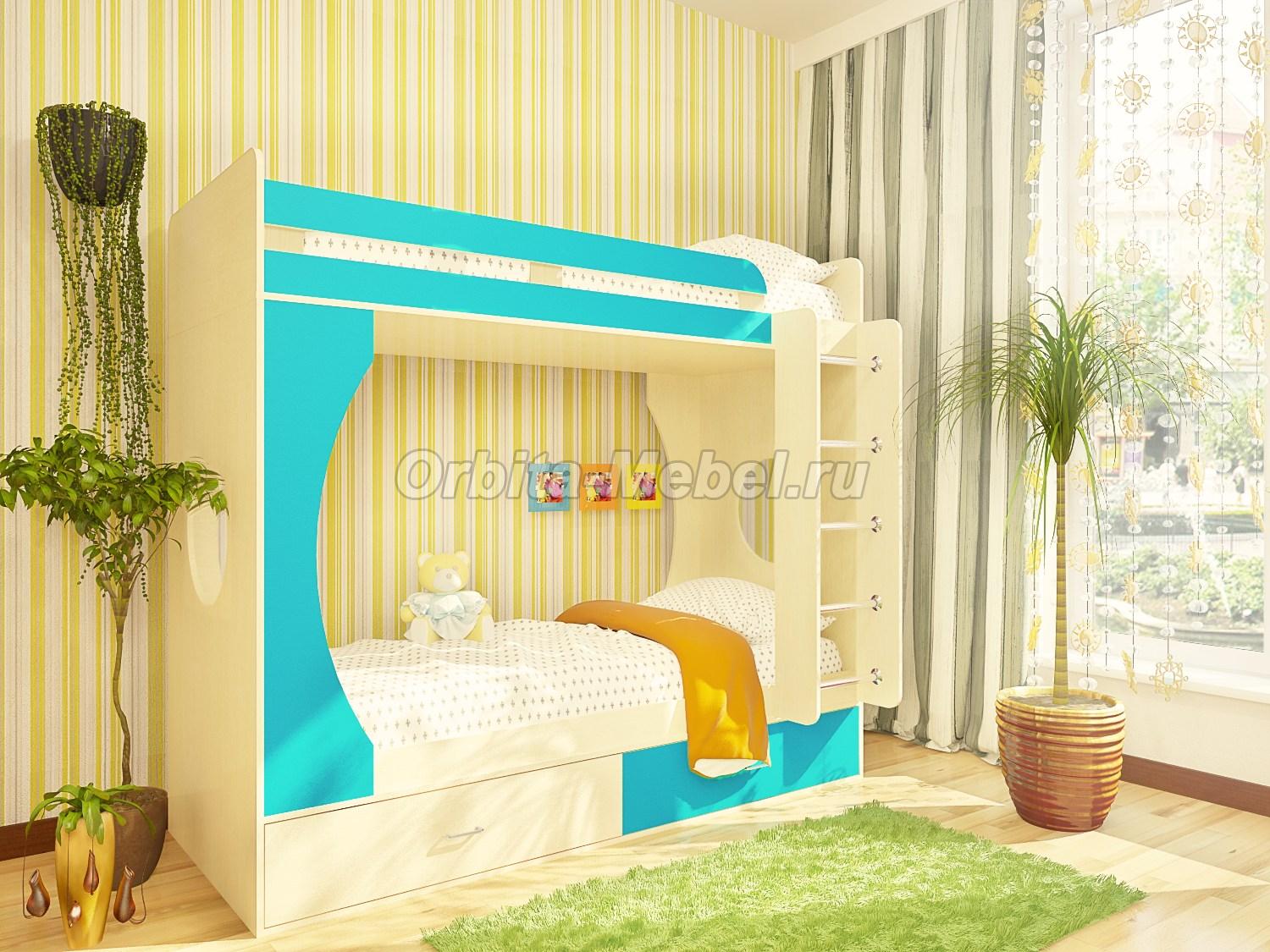 203*Н179*85,4, спальное место 80*200. Детская двухярусная кровать Орбита-2 - лучший подарок нашим детям.