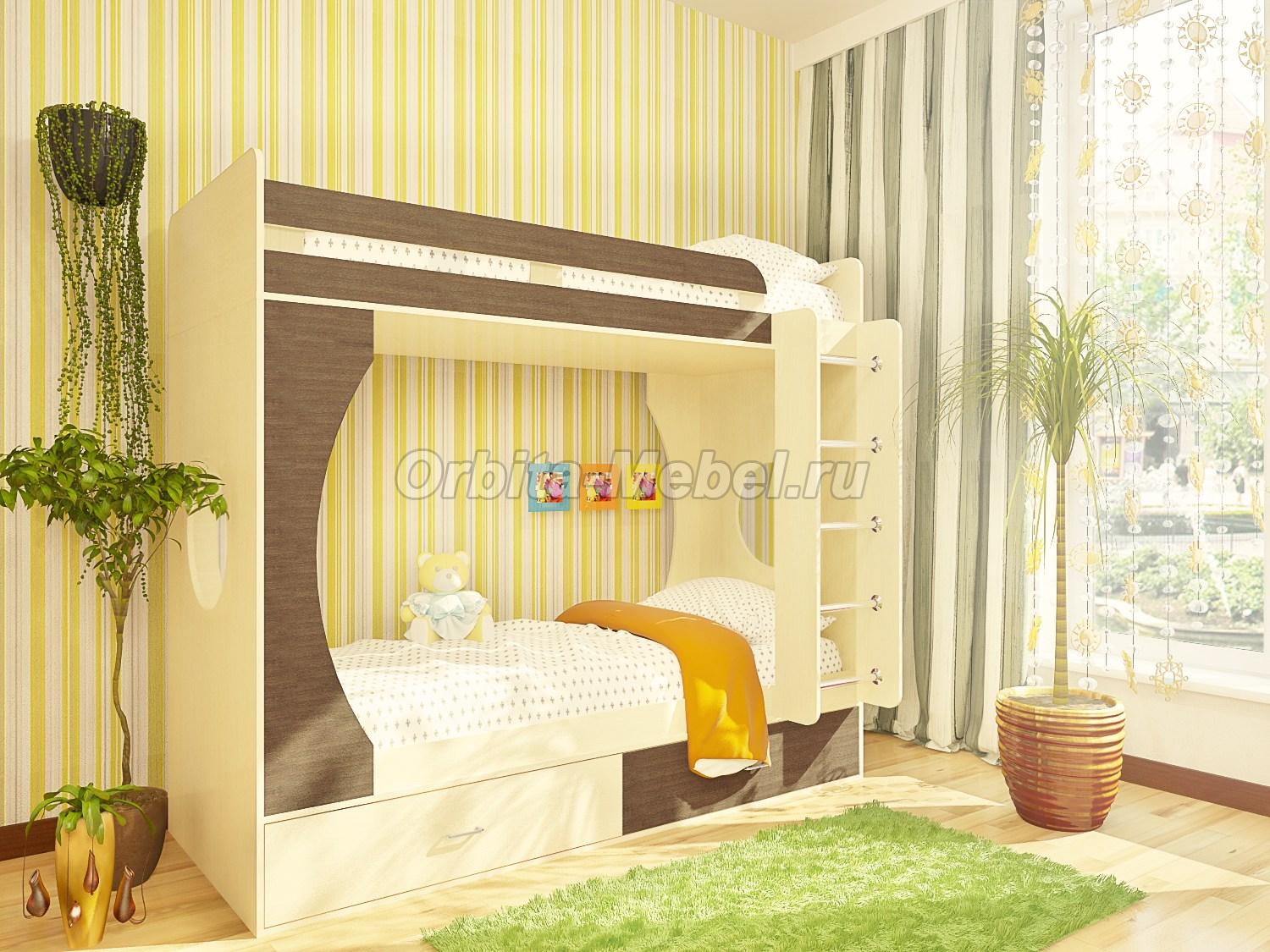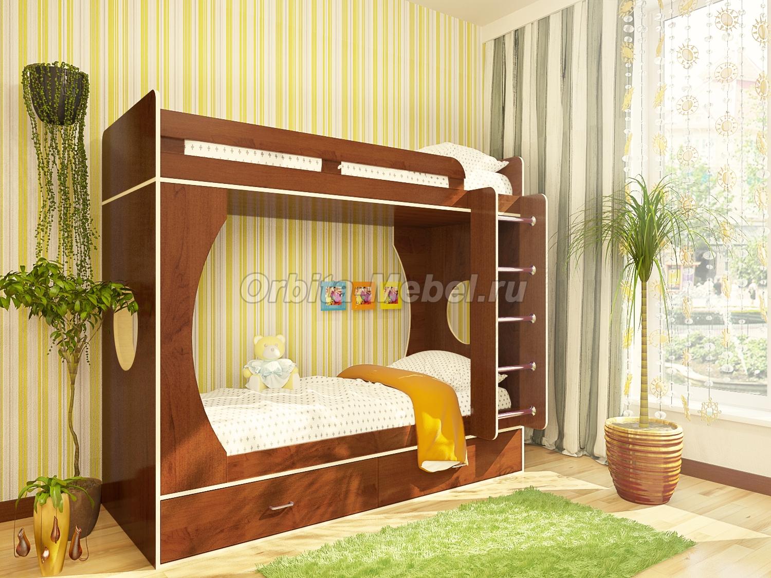 Детские двухъярусные кровати Орбита-2 орехНМЛ - мебель детям, спальн место 80*200