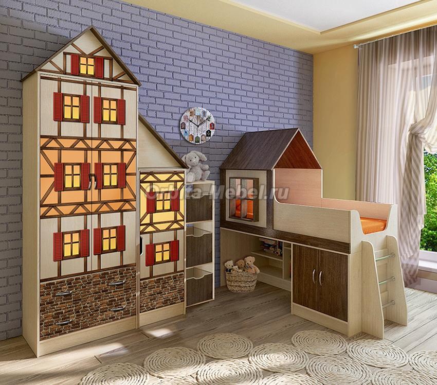 Кровать-чердак Фанки Кидз 6/2 и мебель Фанки Кидз Домик