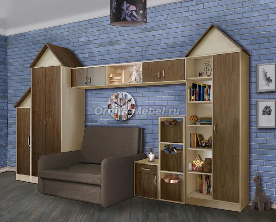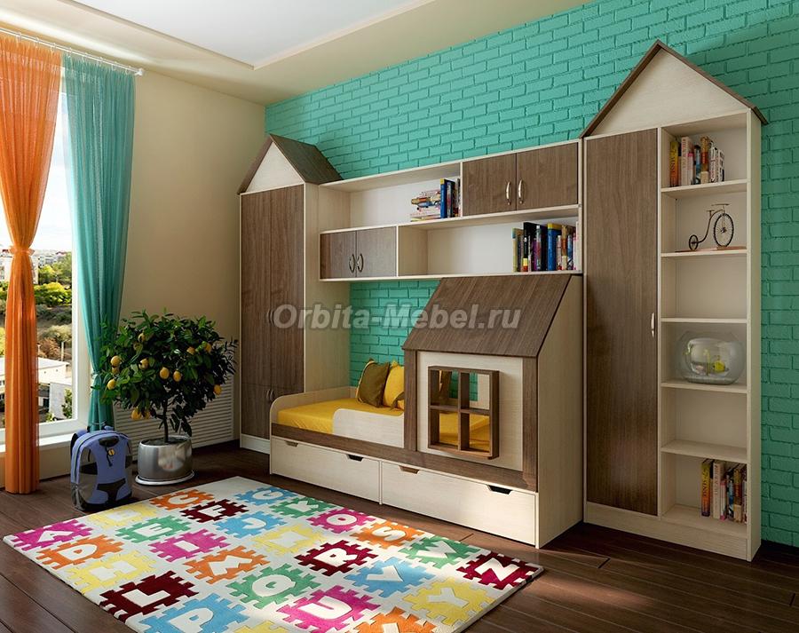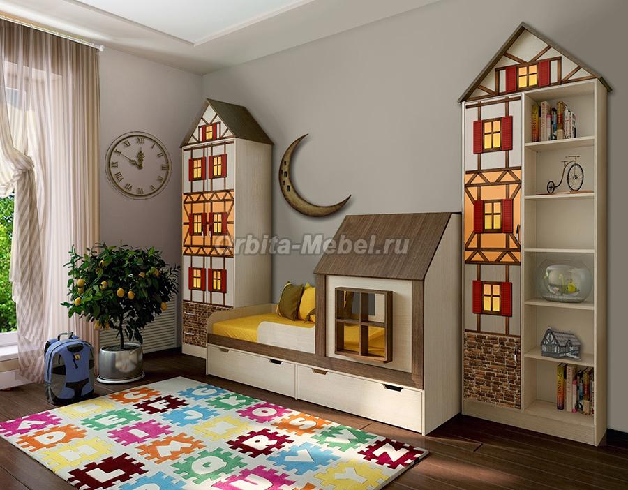 Одноярусная кровать Фанки Кидз Домки 13.7/2 и мебель Фанки Кидз Домик