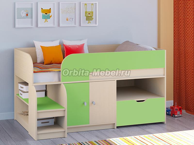 Кровать-чердак Астра 9 V4 в цвете Дуб Молочный / Салатовый