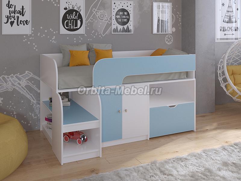 Кровать-чердак Астра 9 V4 в бело-голубом цвете