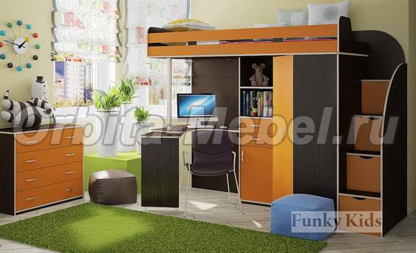 Кровать чердак Фанки Кидз 1 Гранд + комод 13/24ФМ корпус венге / фасад оранжевы