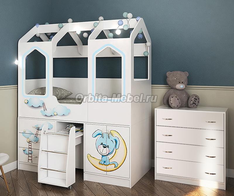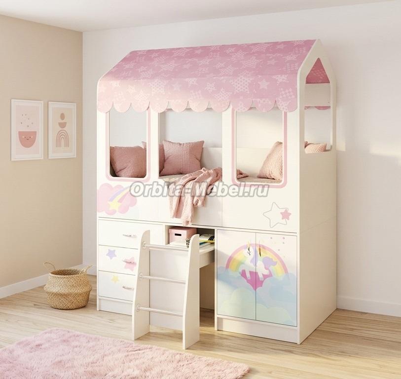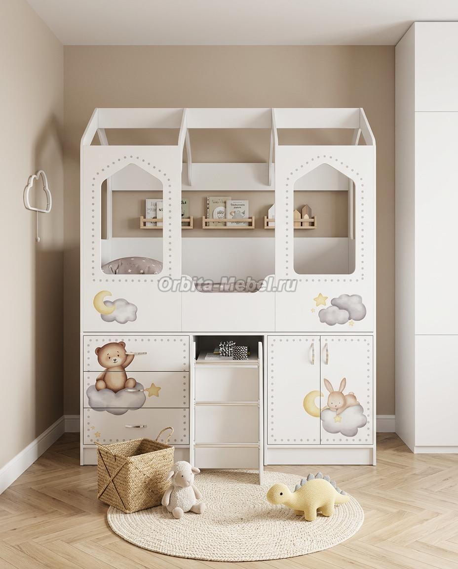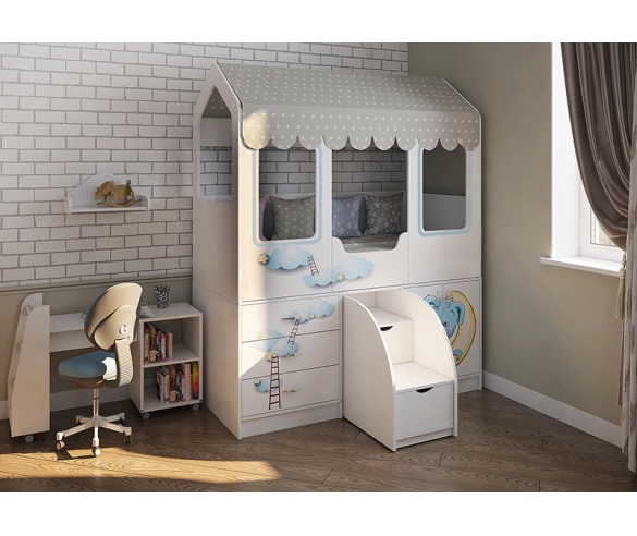 Кровать-чердак Домик-Сказка и тумба-лестница