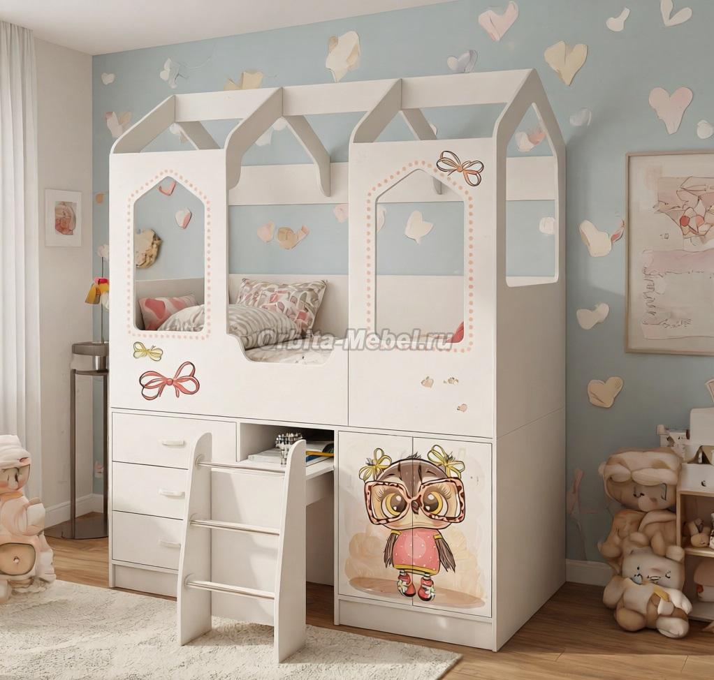 Кровать Домик Сказка ДС-14 с рисунком Совушка
