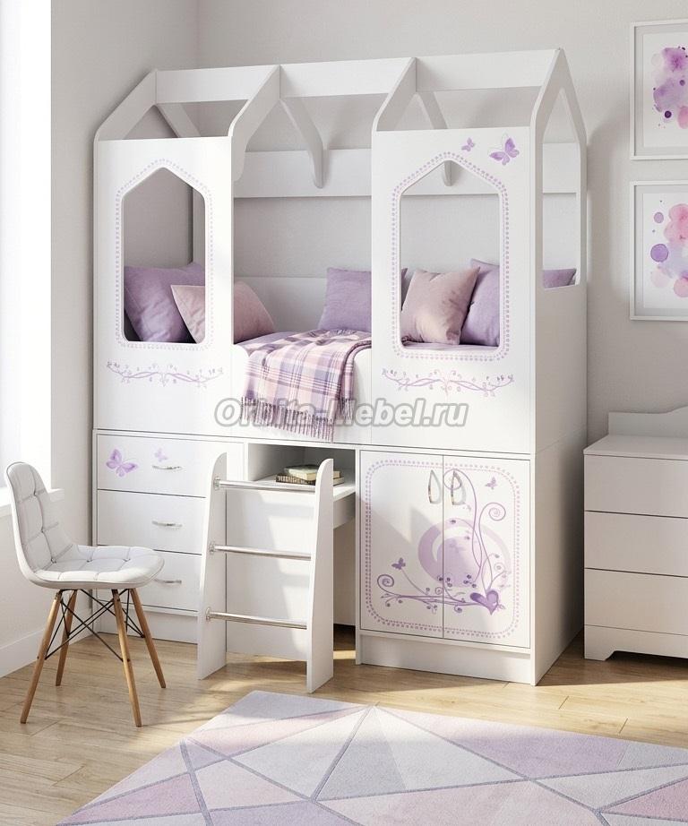 Детская кровать Домик ДС-14 рисунком Лилак