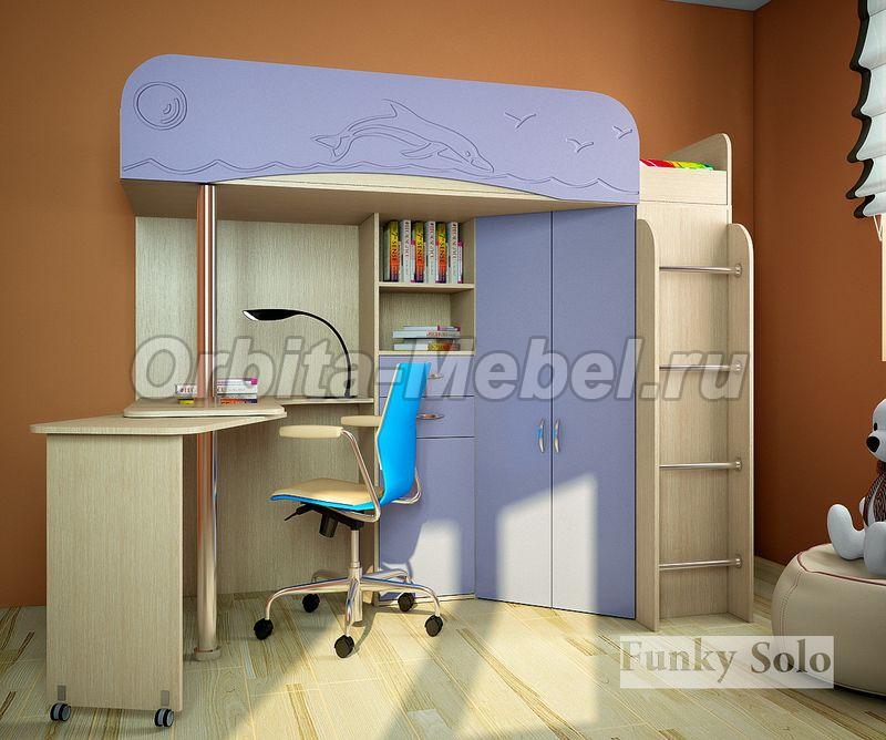 Кровать чердак Фанки Соло 3 (фасады МДФ) спальное место 200х80 см. Дуб кремона/Голубой