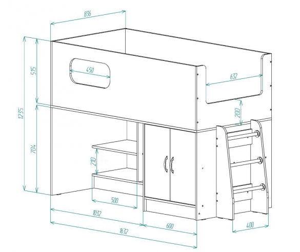 Кровать-чердак Сказка со сплошным бортиком и окошком