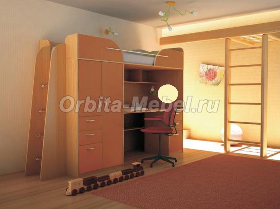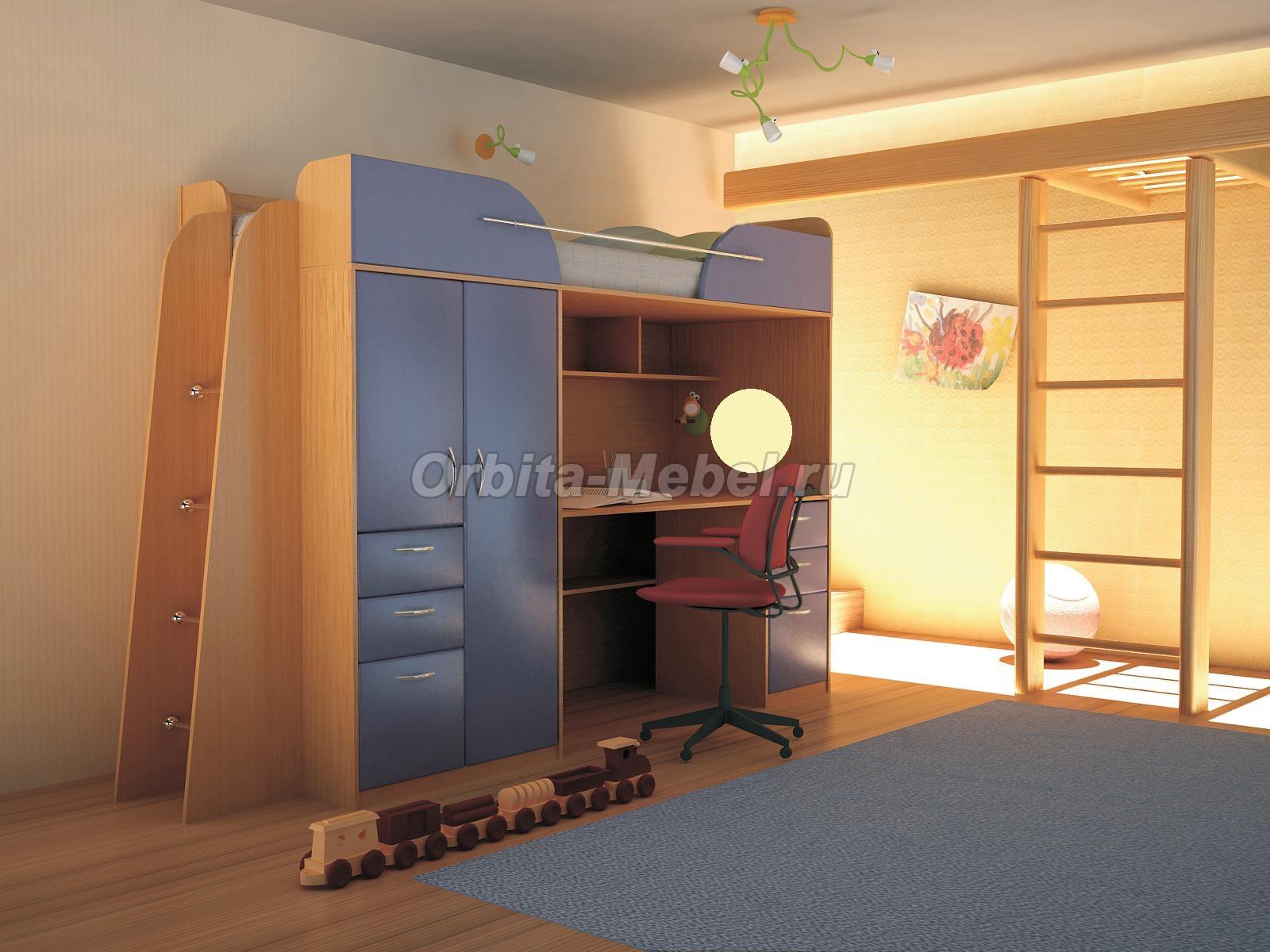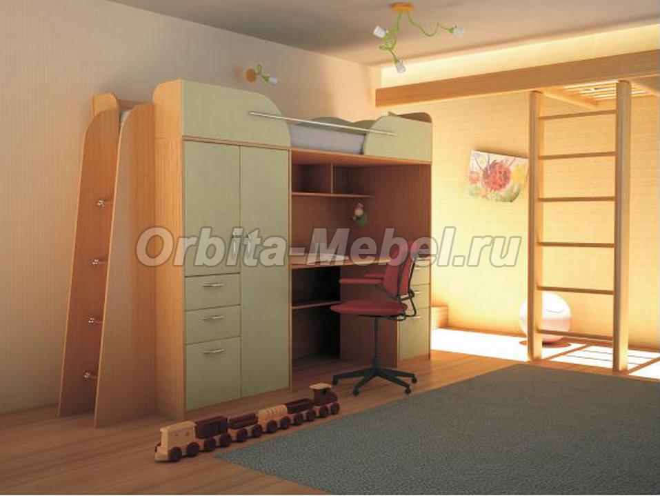 Детская кровать чердак Орбита-4 - стенка для детей - купить в Москве