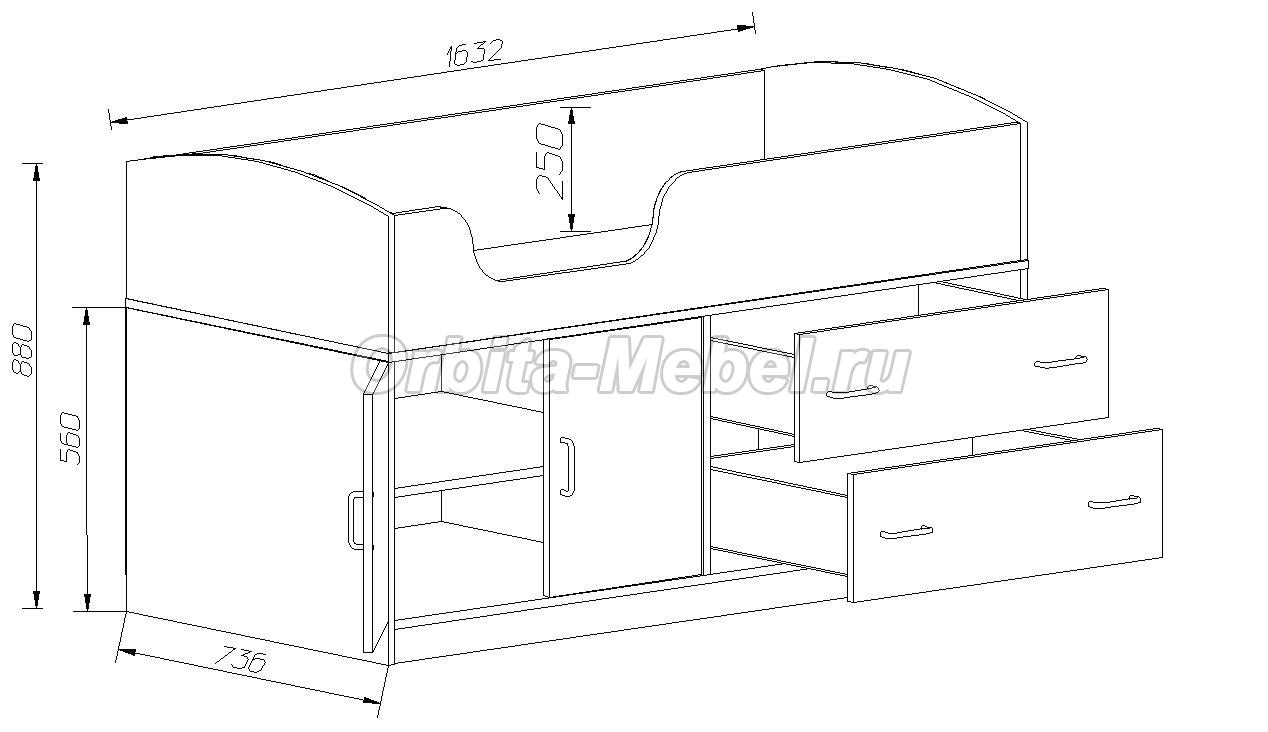 Д1632хВ880хГ736 мм, спальное место 160х70 см, матрац приобретается отдельно.