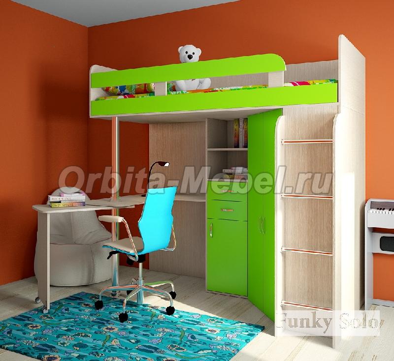 Кровать чердак с рабочим столом Фанки Соло 2 бук / лайм