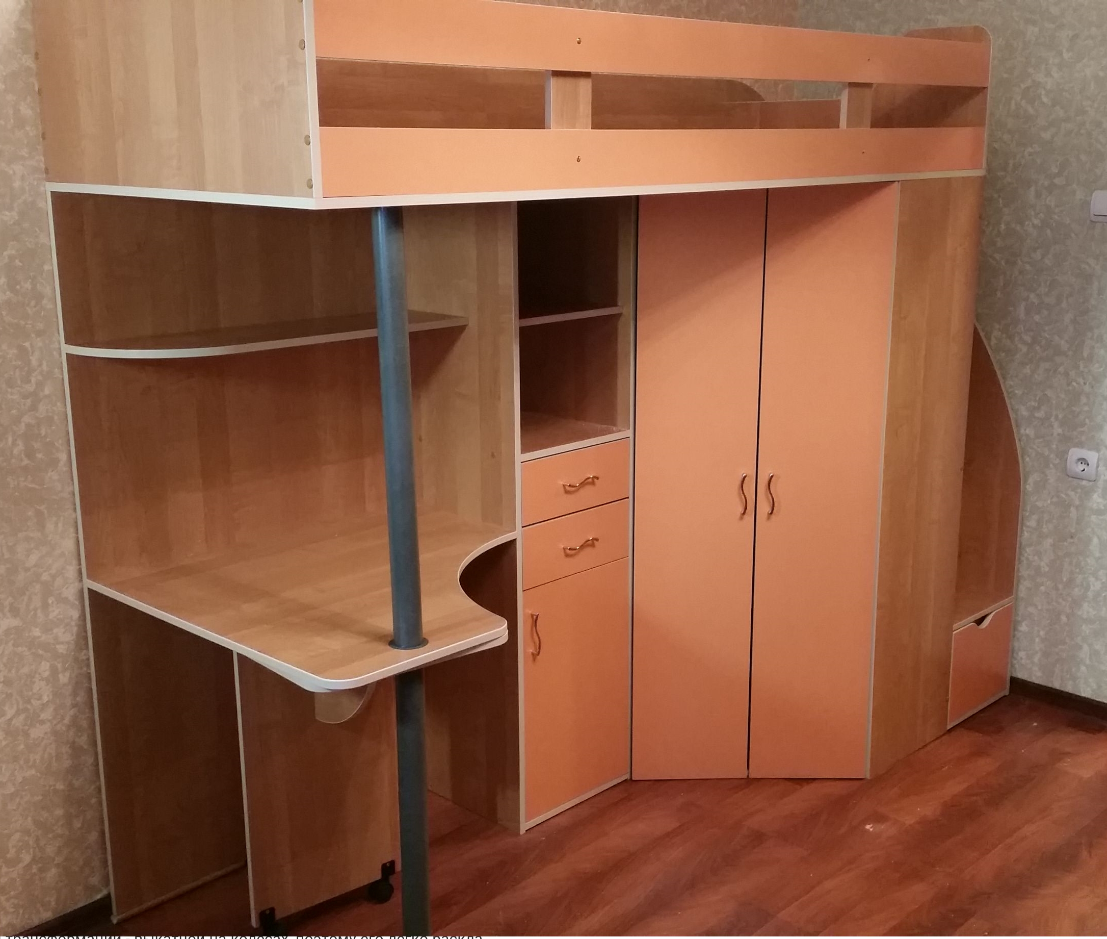 Кровать чердак Фанки Кидз 1 Гранд + комод 13/24ФМ корпус венге / фасад оранжевый