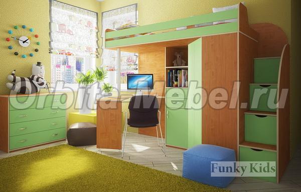 Кровать чердак Фанки Кидз 1 Гранд + комод 13/24ФМ корпус ольха / фасад салатовый
