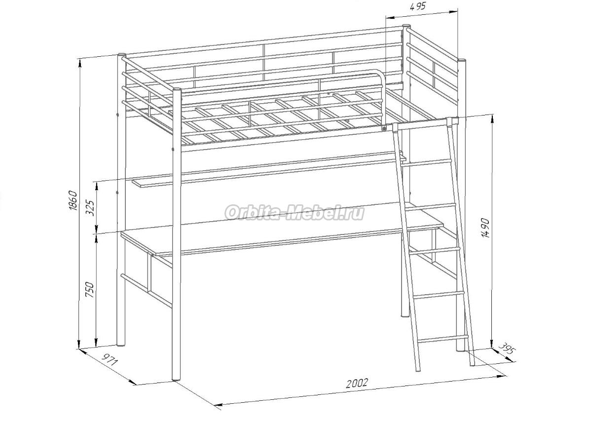 Кровать чердак Севилья 5 Серый/Ясень шимо светлый