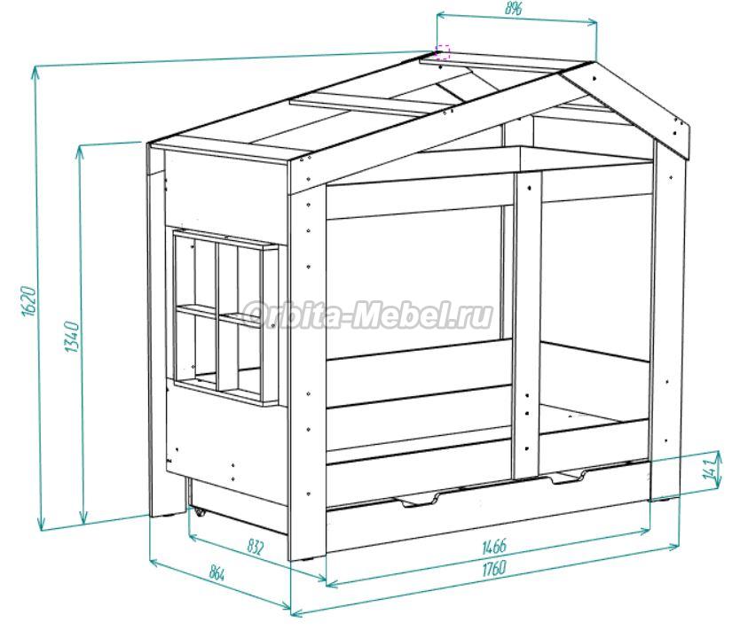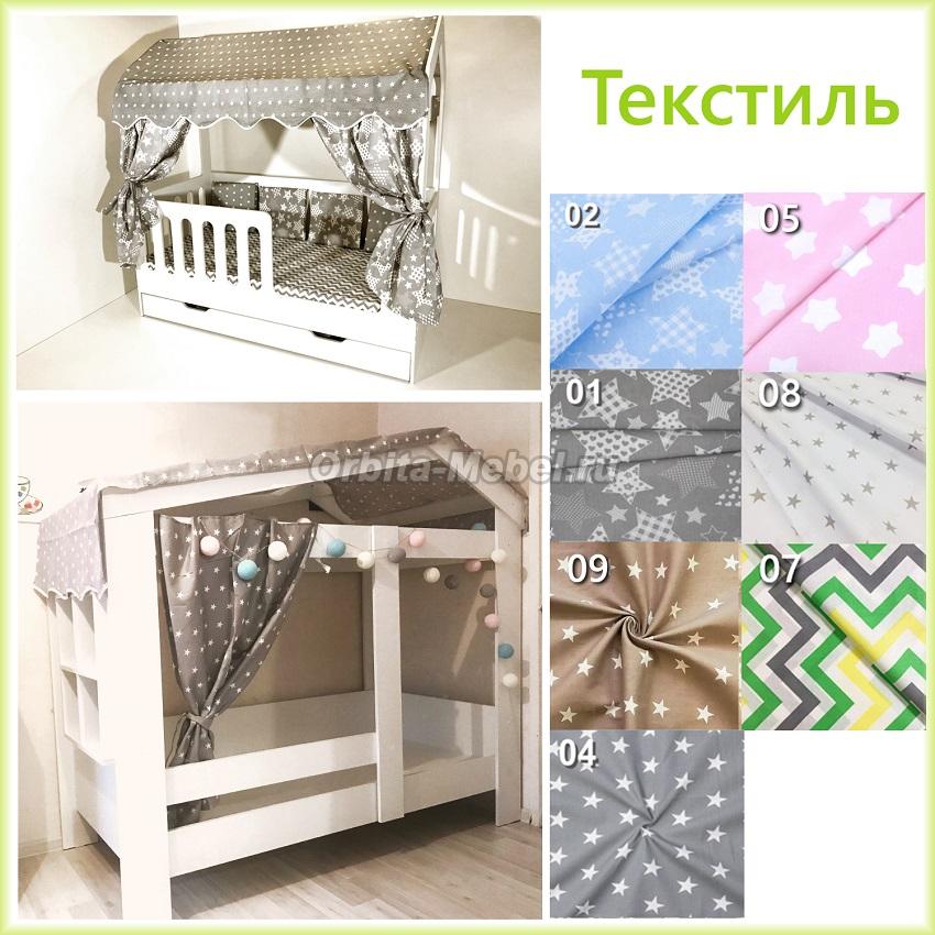 Кровать-домик ДС-32 с отделкой в сером цвете