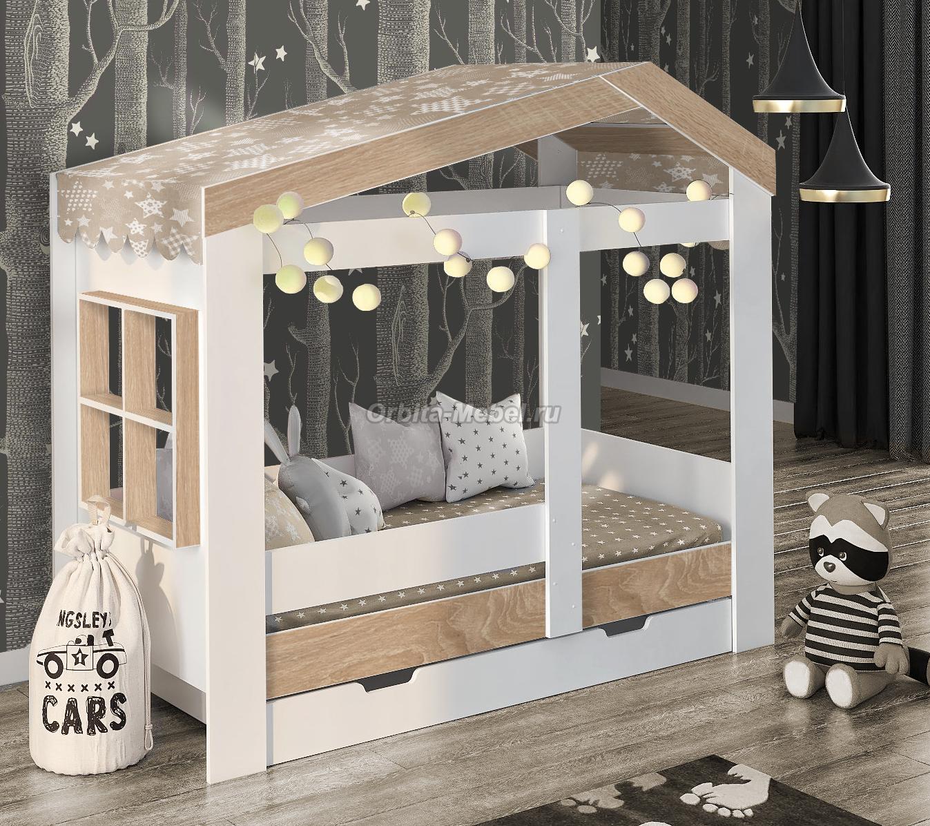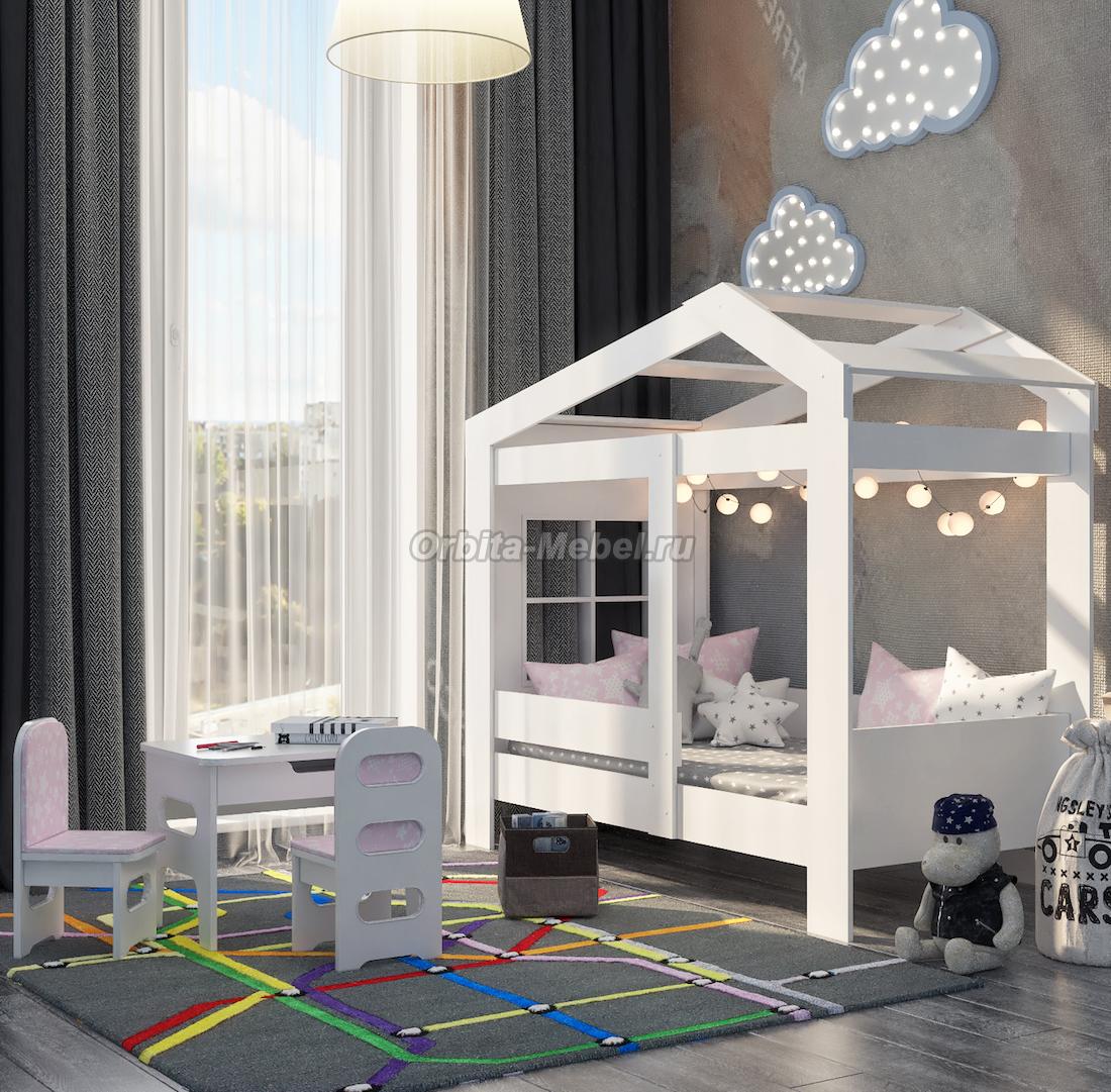 Кровать Домик Сказка ДС-32 в белом базовом цвете