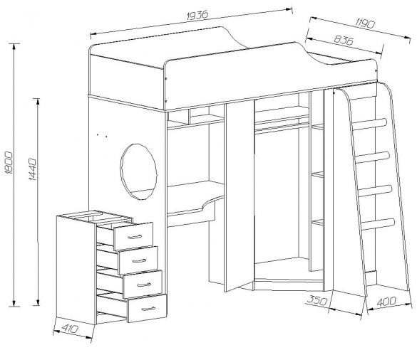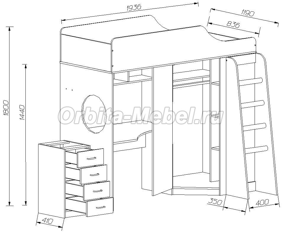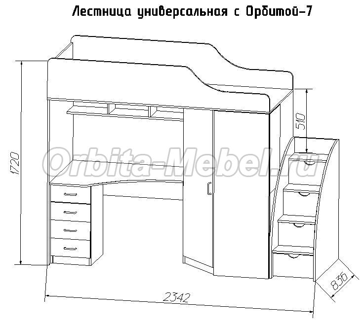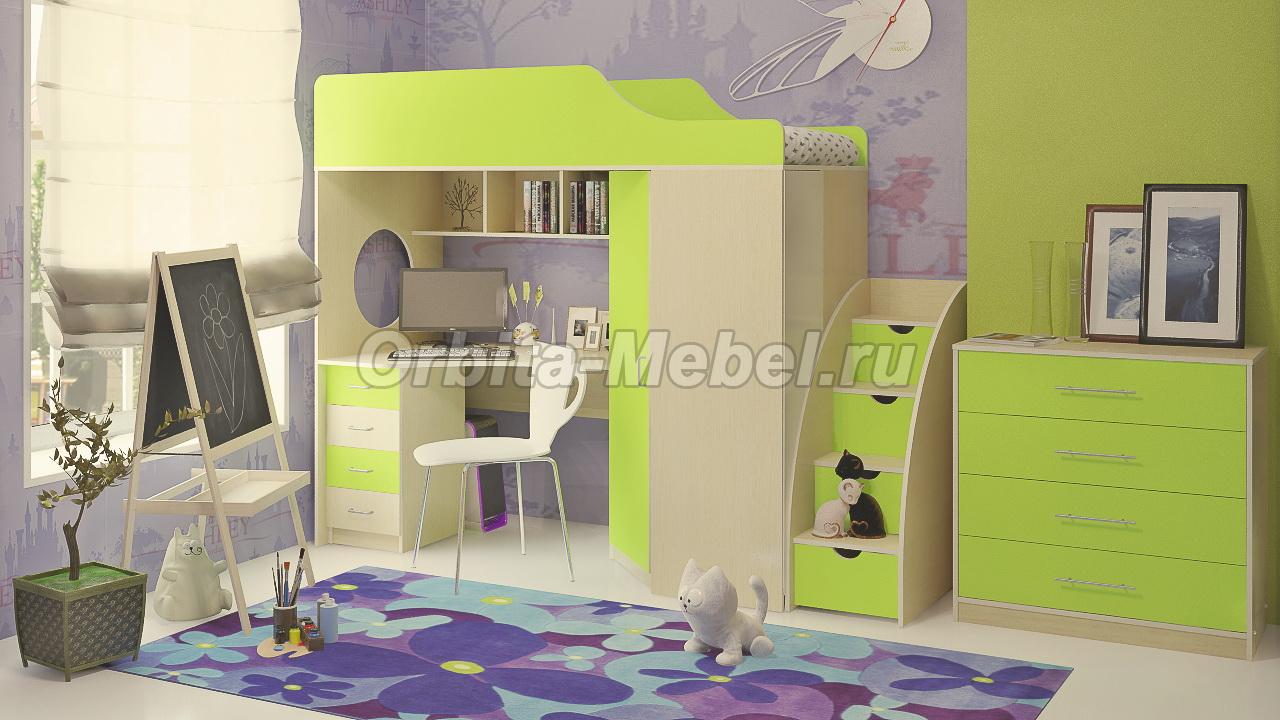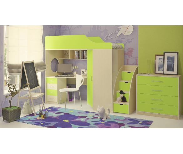 Кровать Орбита 7+ лестница+комод (дуб кремона- лайм)