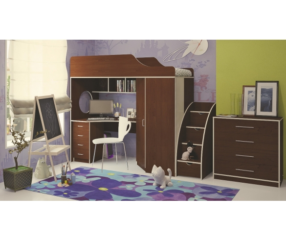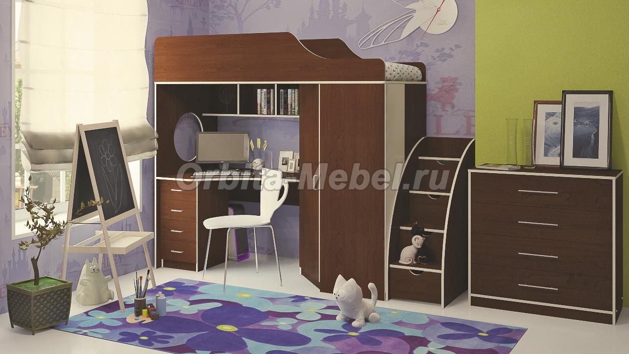 Кровать Орбита 7 +лестница+комод (итал. орех нмг- итал. орех нмг