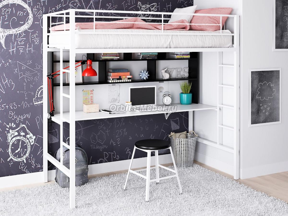 Кровать чердак Севилья Белый + Белый/Черный