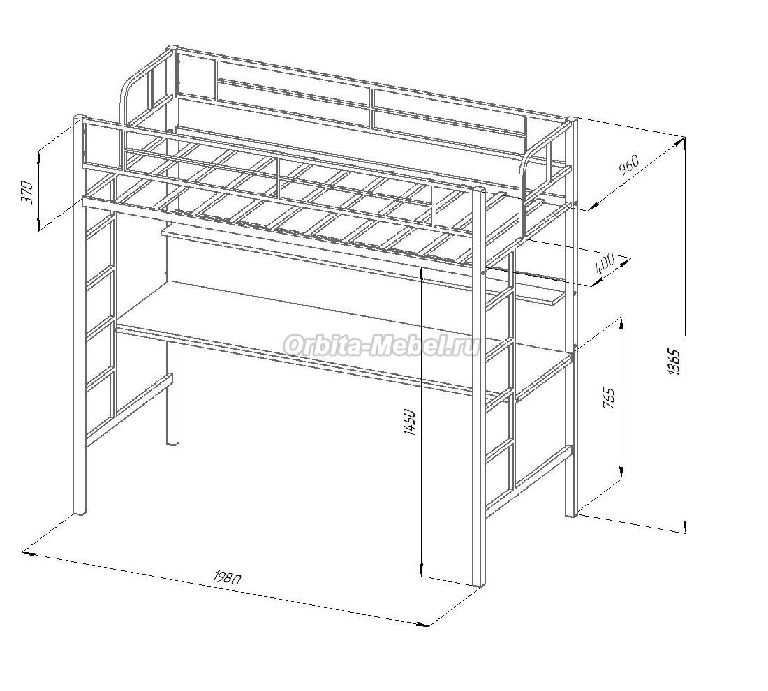 Схема с размерами кровати-чердака Севилья