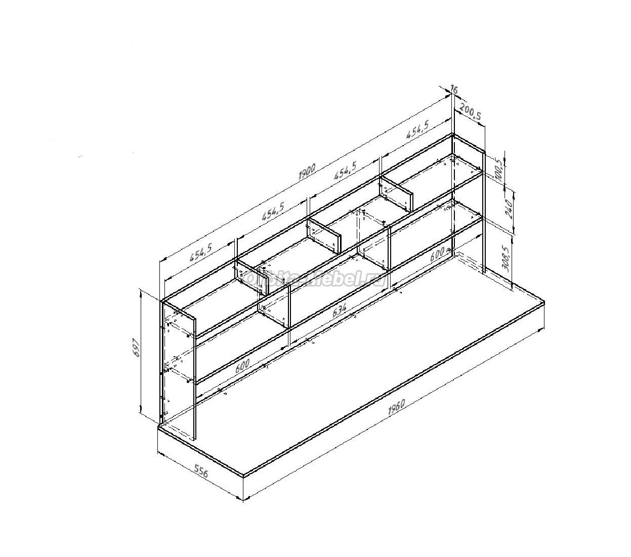 Схема рабочего стола и полок для кровати Севилья